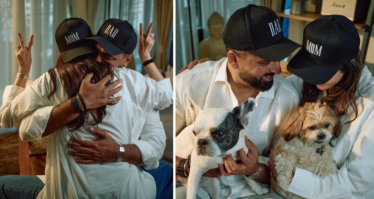 The primary image featured her and Bangera dressed in caps with “Mother” and “Dad” written over them. Adopted through photos of the couple preserving the newborn’s sneakers.